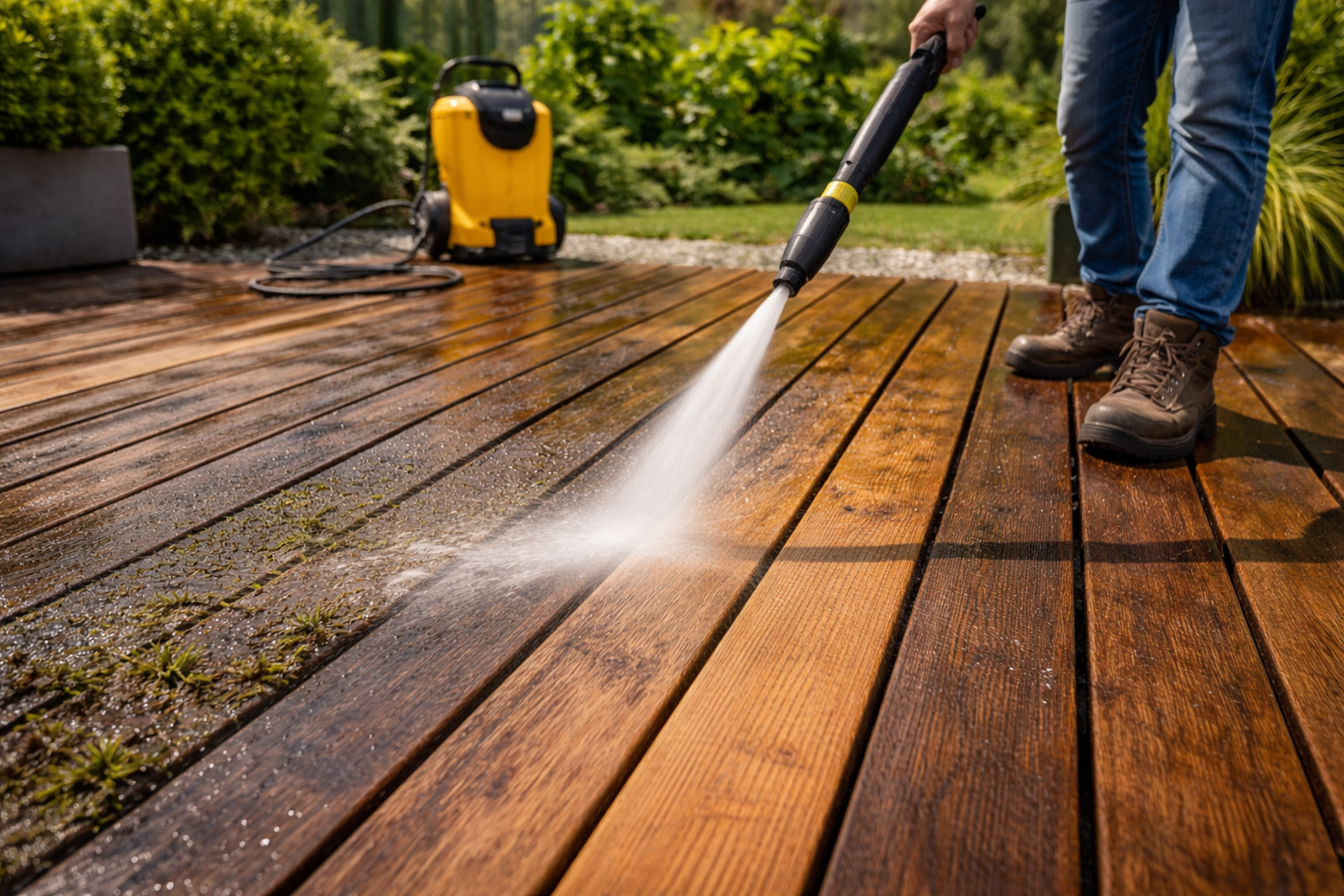 - Umyj deski wodą z delikatnym detergentem lub myjką ciśnieniową