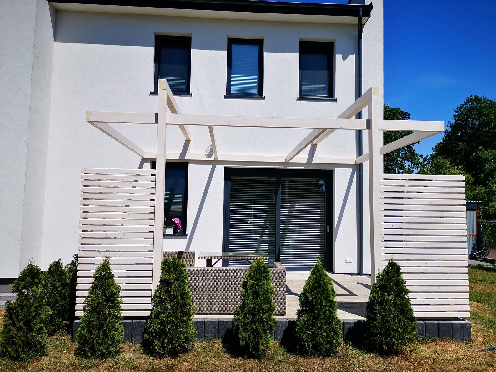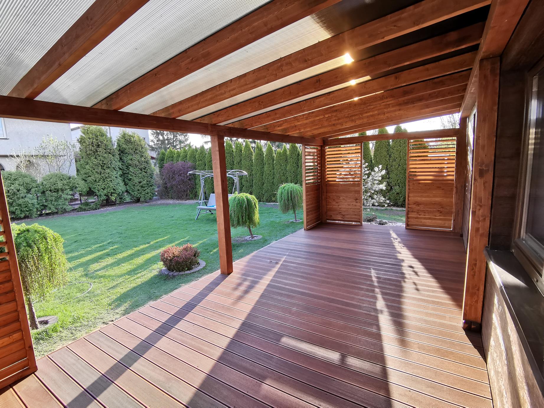 Przedstawiamy wybrane realizacje naszych inwestycji. Pergole wykonane z drewna klejonego BSH idealne do zastosowania w naszych warunkach klimatycznych, przykryte poliwęglanem komorowym lub roletą rzymską występującej w wersji manualnej lub automatycznej. Tarasy drewniane z najwyższej jakości deski drewnianej lub kompozytowej. Kolorystyka dostosowana do potrzeb naszych klientów.